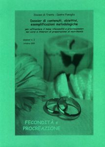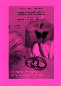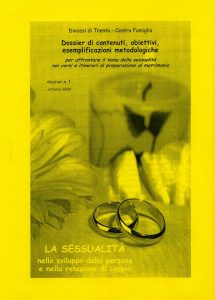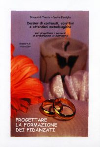Dossier di contenuti, obiettivi ed esemplificazioni metodologhiche per aiutare gli animatori ad affrontare le diverse tematiche nei corsi di preparazione al matrimonio o nei percorsi di catechesi pre e post battesimale. I dossier sono disponibili presso il Centro Diocesano Famiglia.