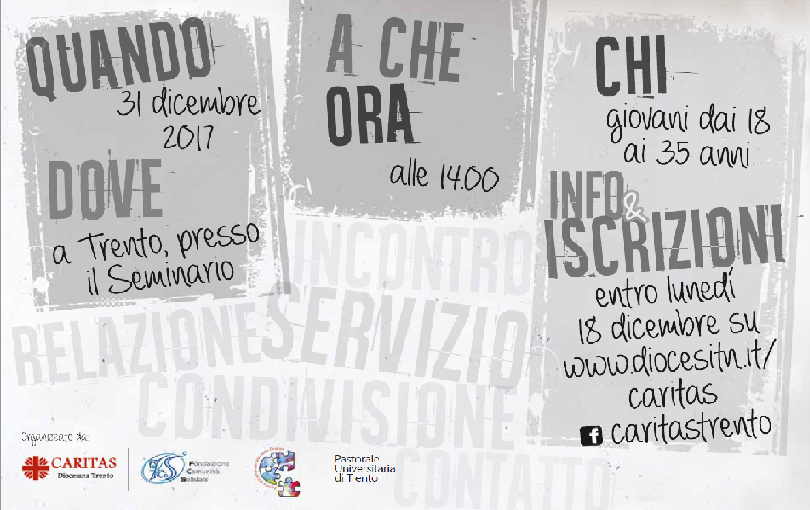 La Caritas diocesana di Trento, in collaborazione con la Fondazione Comunità Solidale, la Pastorale Giovanile e la Pastorale Universitaria organizzano la settima edizione del Capodanno Capovolto!