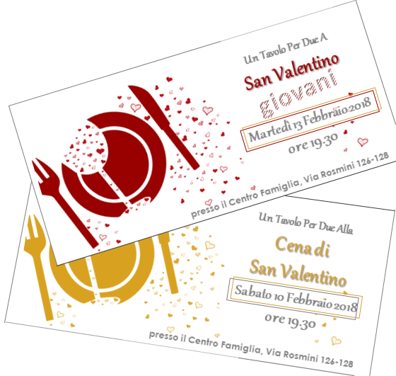 Regala una cena di San Valentino! bookmark Famiglia Notizie access_timePubblicato il: 18 Dicembre 2017 Famiglia NON SAI ANCORA COSA REGALARE A NATALE? ALLORA, REGALA AMORE ! REGALA “SAN VALENTINO 2018″: LA NOSTRA CENA ROMANTICO-SPIRITUALE PER LA COPPIA Per saperne di più