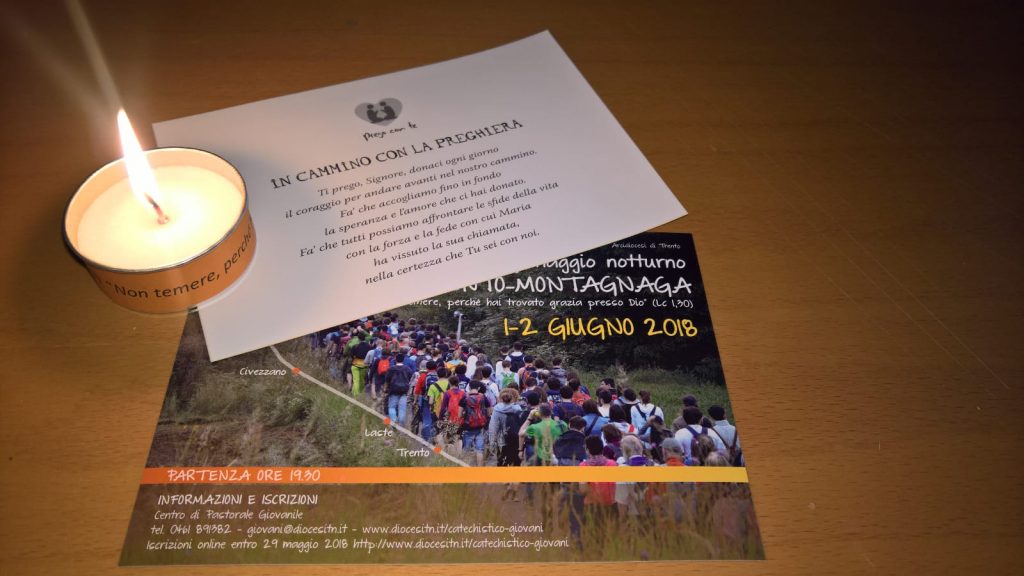 Nelle settimane precedenti al pellegrinaggio, i gruppi sono invitati ad incontrare persone (anziani, famiglie, giovani) che vivono situazioni di difficoltà, bisogno, malattia, portando nelle case la preghiera del pellegrinaggio ed un lumino: sarà l’occasione per raccogliere una preghiera,da portare a Piné. La sera del pellegrinaggio, i pellegrini porteranno con sé le persone, le situazioni che hanno incontrato e pregheranno per loro; chi rimane a casa accenderà il lumino e pregherà per chi è in cammino. Sarà un portarsi reciproco!