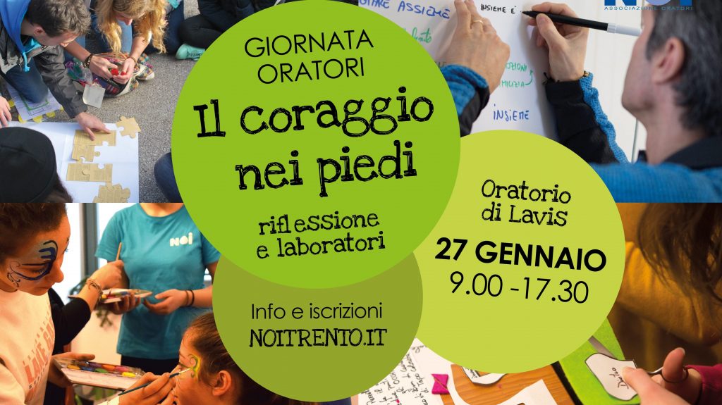 Domenica 27 gennaio, dalle ore 9.00 alle 17.30, presso l’oratorio di Lavis, si svolgerà la giornata di formazione per animatori dal titolo “Il coraggio nei piedi”.