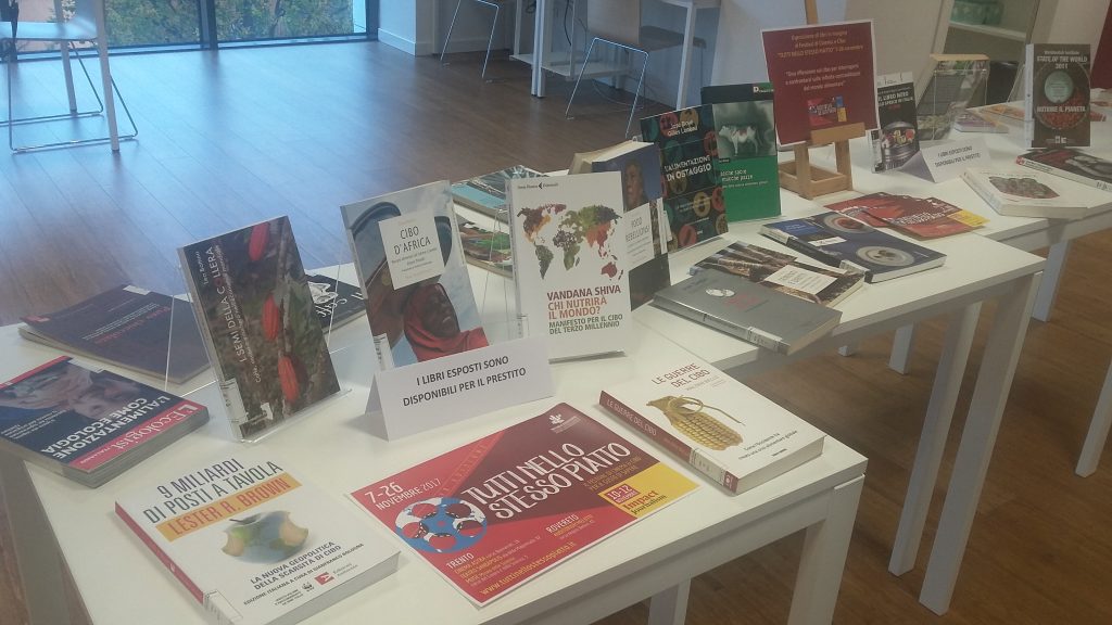 La Biblioteca Vigilianum prende spunto dal Festival Internazionale di Cinema Cibo e Videodiversità TUTTI NELLO STESSO PIATTO organizzato a Trento da Mandacarù Onlus e Altromercato, dal 7 al 26 novembre, per esporre un’ampia scelta di libri sulle tematiche del cibo, della sua produzione e delle numerose contraddizioni e situazioni di ingiustizie che ne derivano.