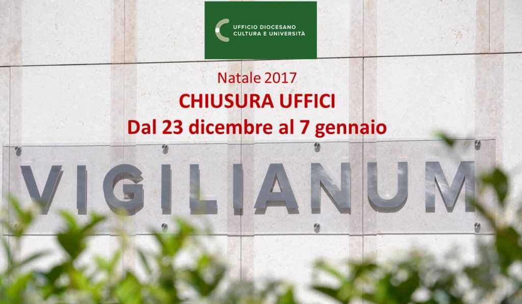 Chiusura Uffici bookmark Cultura access_timePubblicato il: 15 Dicembre 2017 Natale 2017 Gli Uffici riaprono al pubblico lunedì 8 gennaio 2018