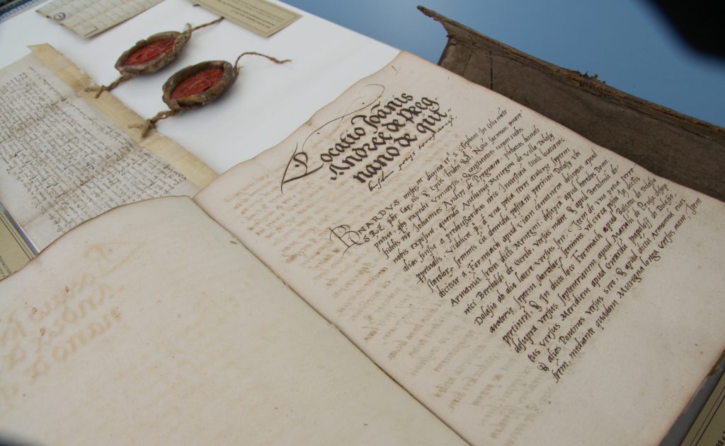 Sono stati esposti alcuni documenti rappresentativi dei vari fondi conservati nell’Archivio. Dalle serie degli Atti visitali ai registri della Mensa Vescovile, dalla documentazione della DC al primo volume delle Investiture (1363-1539), dagli archivi parrocchiali al fondo Domenico Viesi, l’allestimento si propone di fornire una panoramica del materiale e degli sviluppi che l’Archivio ha valorizzato e sta valorizzando.