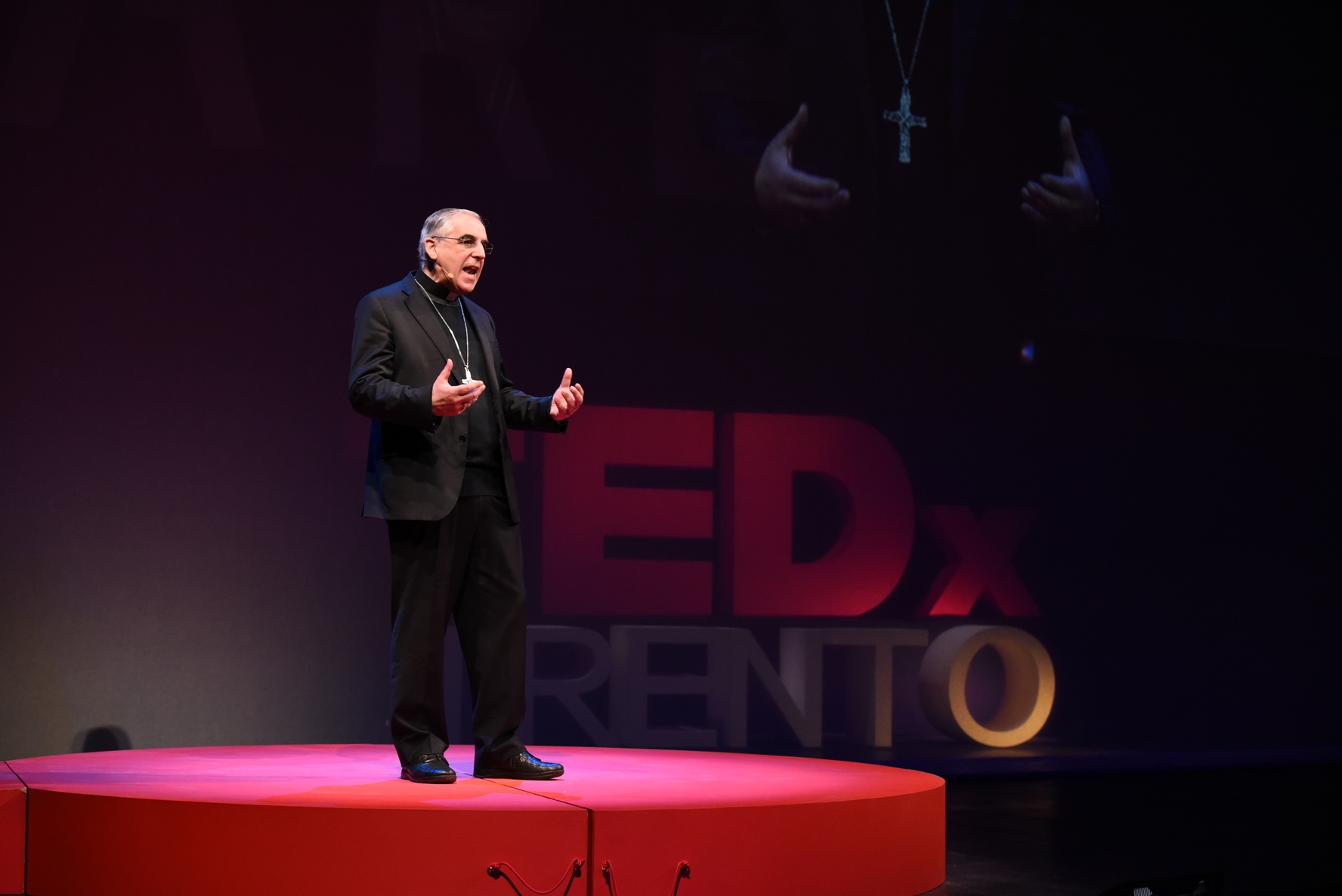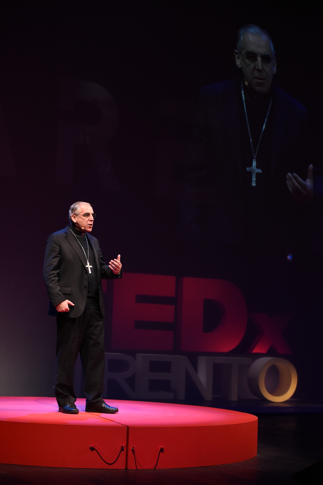 Il suo “Dio capovolto”, manifesto episcopale annunciato ai giovani incontrati per primi nel giorno del suo ingresso a Trento, suonava, probabilmente, fin dal titolo, del tutto nuovo per la maggior parte dei settecento seduti in platea e sui palchi del teatro Sociale. E’ il motivo che ha portato il vescovo Lauro a sceglierlo come tema del suo talk all’edizione nostrana di TEDx, l’evento delle idee innovative, andato in scena sabato 25 novembre. La lungimiranza degli organizzatori (l’invito a don Lauro risale alla primavera scorsa) gli ha consentito così di declinare, a modo suo, la parola “Dio” su quella strana pedana rossa che nulla ha a che fare con i colori liturgici o con i tradizionali contesti culturali. Chiaro, fin dall’esordio, l’obiettivo di Tisi: dirottare l’attenzione da un Dio accostato a “conflitti, guerre, violenza”, a “stati d’animo di paura e angoscia” o da un Dio che “ha portato a evadere dalla concretezza della realtà” verso “quel Dio capovolto narrato dalla vicenda umana di Gesù di Nazareth, che frantuma il concetto di onnipotenza e lo riorganizza attorno al concetto di mitezza”. L’Arcivescovo la traduce con il “gioire del fatto che esistono gli altri, la predisposizione a far sì che l’altro viva, sia amico e non avversario, un compagno di viaggio”. Ecco allora che credere nel Dio di Nazareth è “un’operazione esistenziale, che coinvolge la vita” e l’”abbassarsi al livello dell’altro non è etica, ma porta benessere”. La conferma nell’infausta alternativa, quel “laghetto di Narciso che custodisce la morte: quando l’ego – si appassiona don Lauro – ingrandisce se stesso, sente solo l’eco delle proprie performance, quando l’ego diventa eco, implode e si divora” per cui “meglio ferito dall’altro che distrutto come Narciso”. I minuti del monologo scorrono, fino all’apice del “capovolgimento” di Dio, davanti a un pubblico incollato alle parole: “Il divino narrato da Gesù è l’umano che raggiunge il suo vertice: perdono, amore per il nemico, gratuità assoluta fino a donare la vita. Quell’umano è divino”. La prova? Il Vangelo della domenica, festa di Cristo Re: “Avevo fame e mi avete dato da mangiare, sete e mi avete dato da bere”. Le parole risuonano non dall’ambone di una chiesa, ma da una pedana di velluto. Con un faro bianco puntato, per la prima volta, su un vescovo. Decisamente, “in uscita”. (da Vita Trentina)