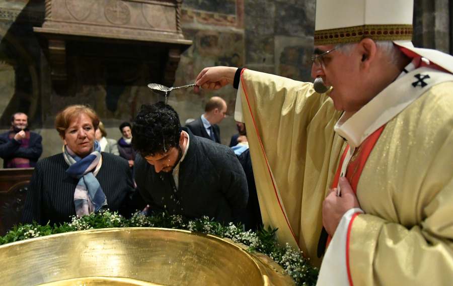 La lunga Veglia, sabato sera, con la benedizione del fuoco e l’accensione del cero, la benedizione dell’acqua, con il conferimento a due adulti dei sacramenti di Battesimo (anche a un bambino), Cresima ed Eucarestia. Quindi il solenne pontificale nella domenica di Pasqua, al culmine del Triduo Pasquale. In cattedrale, insieme all’arcivescovo Lauro e a numerosi concelebranti, tanti fedeli. Nell’omelia della domenica l’Arcivescovo esordisce con la constatazione di “un’esistenza che, spesso, appare più come un sepolcro, che non l’habitat della vita. Da qui – aggiunge – deriva anche quel vero mobbing sociale che giudica e incasella, emettendo su tutto e su tutti sentenze senza appello”. Parla poi di un disagio esistenziale sul quale si sorvola. “Fanno impressione – ammette Tisi – i dati sulle varie dipendenze, da cui nessuna età è esclusa”. Il Risorto per l’Arcivescovo vive nel quotidiano delle persone. “Risurrezione – spiega – è l’onestà personale che ci invita a essere irreprensibili e sobri. Risurrezione è il tesoro prezioso di relazioni sociali costruite sull’ospitalità, la non violenza, la generosità, la sincerità. Risurrezione è spendersi per una comunità.”