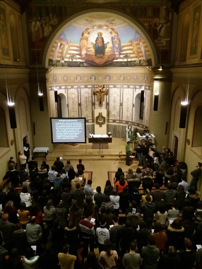 Oltre trecento giovani in Seminario, tanti (anche adulti) collegati via streaming giovedì 17 gennaio per il secondo appuntamento mensile – nell’anno pastorale ’18/19 – di Passi di Vangelo, il percorso biblico-esistenziale riservato ai giovani dai 18 ai 35 anni, in dialogo con il vescovo Lauro. La serata di riflessione e preghiera si è sviluppata attorno al titolo “Il senso delle lacrime“. A che cosa serve il dolore? La domanda guida dell’incontro, con il testo evangelico della vedova di Nain (Lc 7,1-17). Invitati ad elaborare le domande esistenziali d’apertura, a nome di tutti i presenti, i giovani universitari aderenti a Comunione e Liberazione. Ha animato l’incontro il coro giovani della parrocchia di San Carlo a Trento.