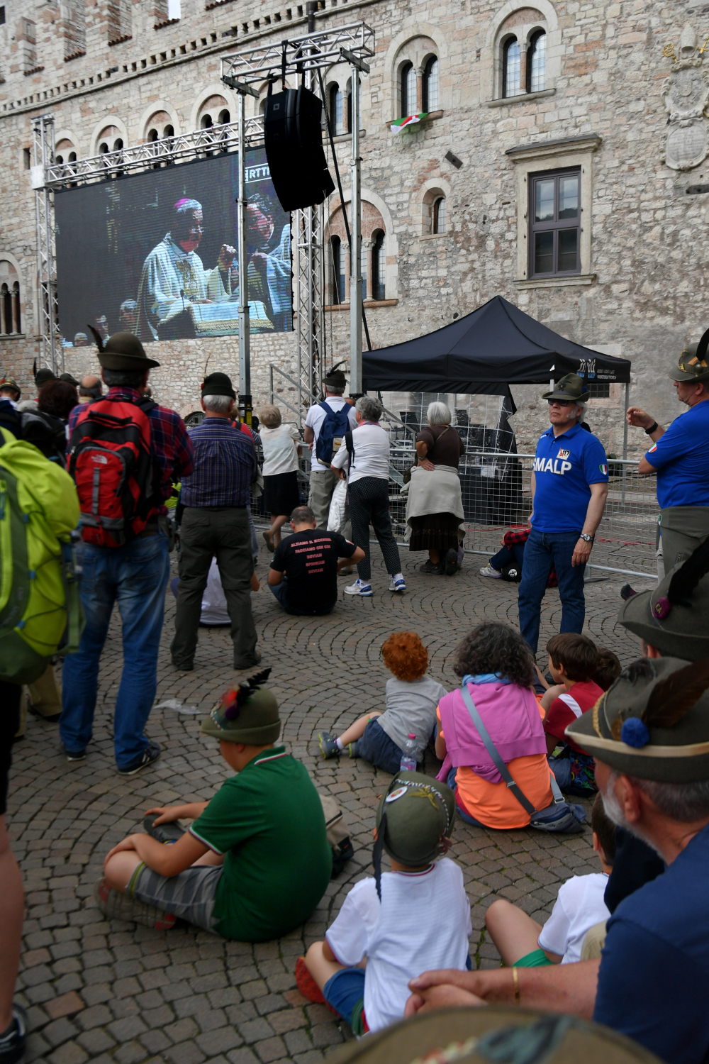 Anche papa Francesco ha ricordato domenica all’Angelus l’Adunata nazionale degli alpini: “Un pensiero speciale rivolgo agli Alpini, riuniti a Trento per l’ Adunata Nazionale. Li incoraggio ad essere testimoni di carità e operatori di pace, sull’ esempio di Teresio Olivelli, alpino, difensore dei deboli, recentemente proclamato Beato”.