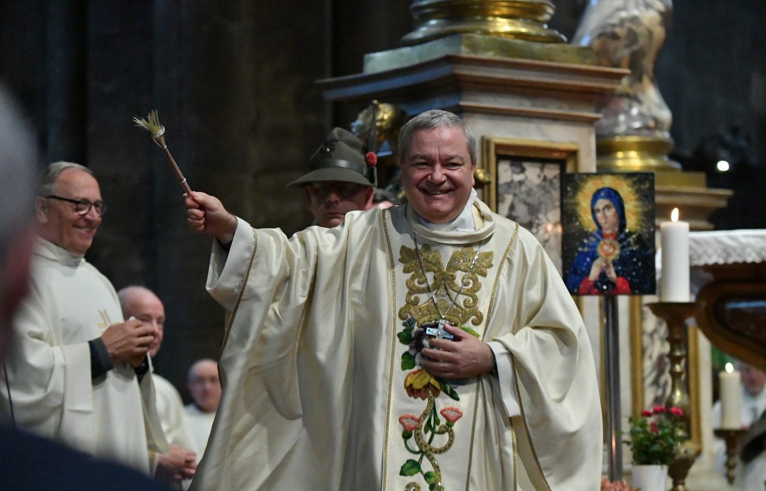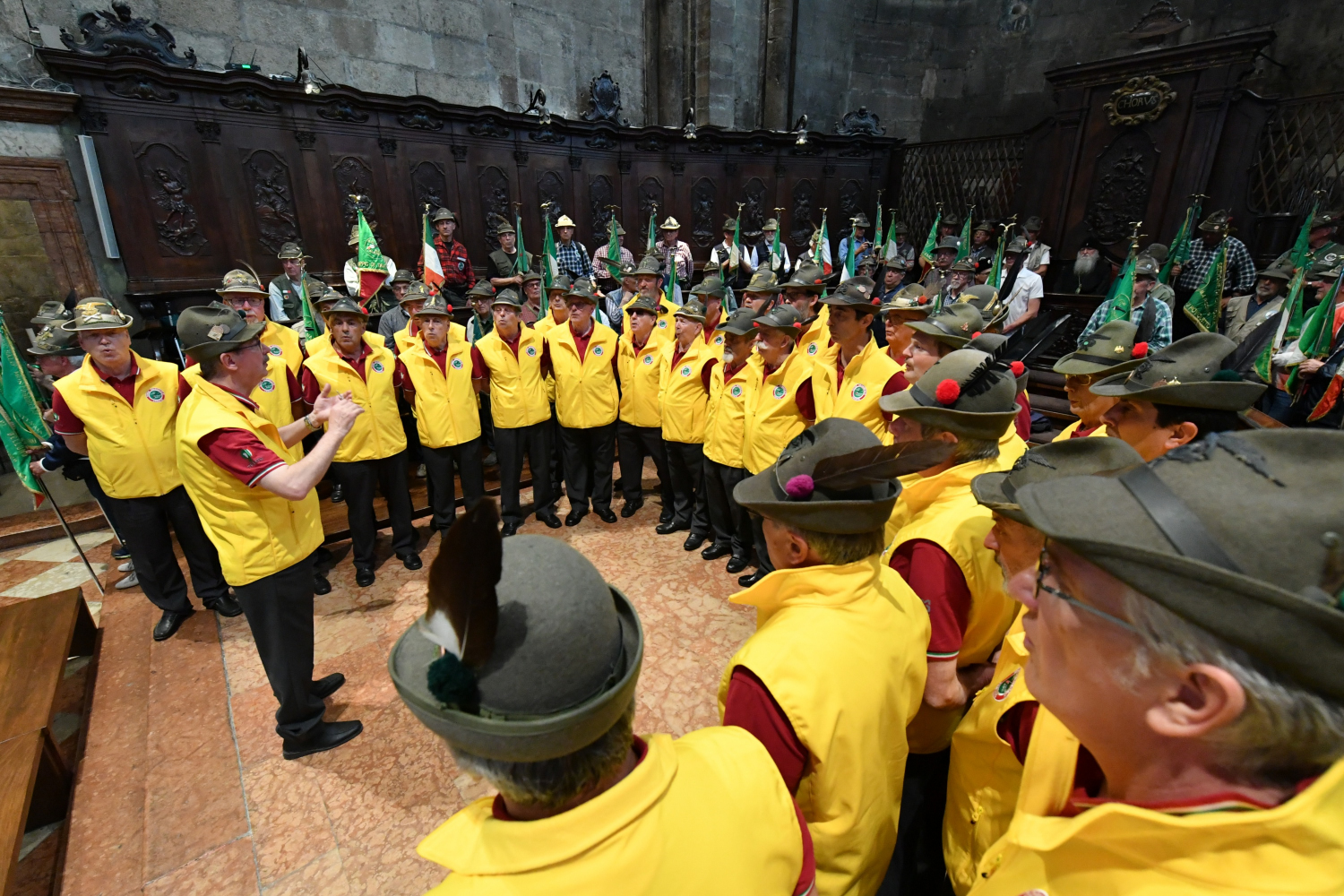 Nel cuore della 91° Adunata, la Messa celebrata oggi pomeriggio dall’Ordinario militare mons. Santo Marcianò insieme all’Arcivescovo di Trento mons. Lauro Tisi e decine di parrocci e cappellani militari ha visto una partecipazione quanto mai numerosa e anche attenta: molti non hanno potuto entrare in Duomo – dove un intero transetto era riservato ai rappresentanti di ogni sezione con i rispettivi labari – e hanno seguito la celebrazione dal maxischermo in una piazza Duomo affollatissima.