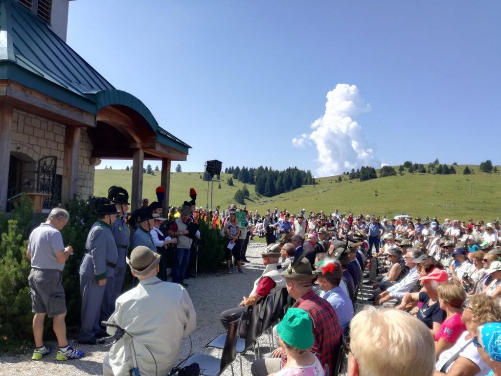 Centinaia di persone – Gruppi Alpini e delegazioni di Kaiserschützen, cittadini e autorità – si sono ritrovati fin dal mattino al passo e hanno sfilato fino alla chiesetta sulle note della Fanfara e del Coro Ana di Trento; qui si è tenuta la cerimonia in onore dei caduti con l’alzabandiera – tre le bandiere presenti, italiana, austriaca ed europea – la deposizione delle corone d’alloro, una della Croce Nera Austriaca e una degli Alpini, quindi i discorsi delle autorità, fra cui un messaggio dell’arciduca Martino d’Este che ha parlato della chiesa di Santa Zita “simbolo di fratellanza fra i popoli”.