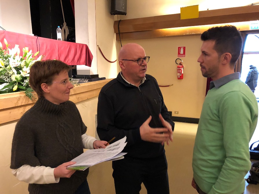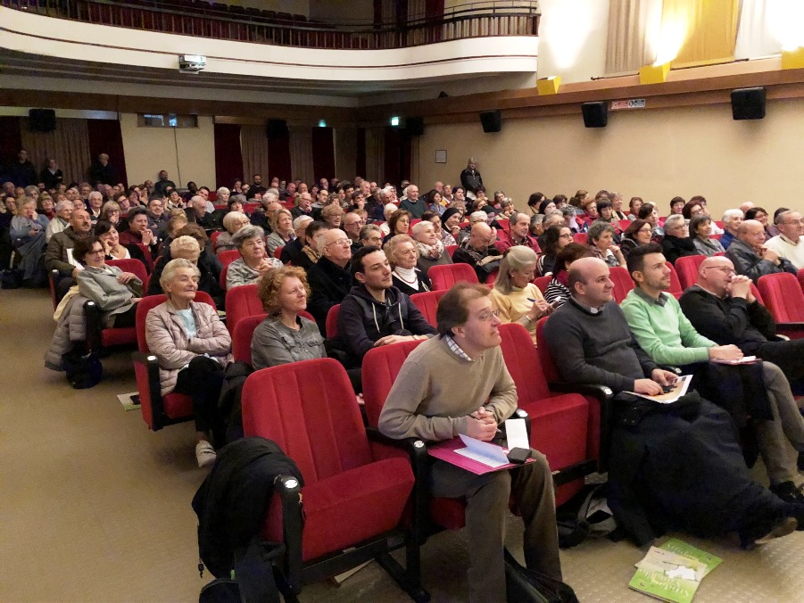 Cambiano le coordinate geografiche – sabato scorso il GPS diocesano “tracciava” il passaggio del vescovo Lauro a Tione – non lo stile e la sostanza. Anche l’Assemblea nel teatro del baricentro della Zona pastorale delle Giudicarie conferma infatti la volontà e la necessità di un profondo check-up ecclesiale, una folata di entusiasmo dentro il rischio dell’appiattimento nell’abitudine. A stimolare la riflessione – in una mattinata coordinata con grinta e competenza da Carlo e Monica e introdotta dal canto del coro l’Arnica di Praso – hanno pensato, con le loro provocazioni, tre laici impegnati, saliti sul palco accanto al Vescovo. Tre angolazioni diverse – il 23enne studente di ingegneria Andrea, con lo sguardo dei figli; Lorenzo, insegnante di matematica, nell’ottica di padri e madri, Ivan nella prospettiva comunitaria – per rileggere lo stato di salute del cammino di fede personale e le motivazioni dell’appartenenza ecclesiale.