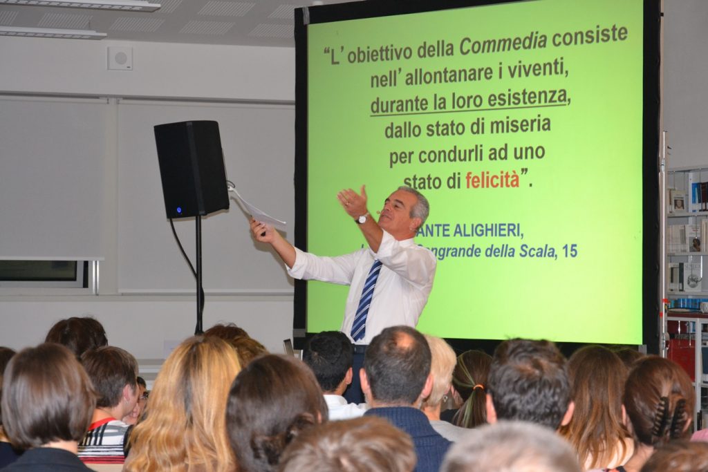 “Ascoltando Dante capiamo che la nostra vita cambia quando smettiamo di stare fermi nelle paure, negli scoraggiamenti, nei fallimenti e stando in mezzo alla vita, ci accorgiamo della possibilità che essa abbia uno scopo e un approdo bello e vero. Egli ci ricorda che siamo fatti per la felicità e accade di capirlo quando scopriamo il senso per cui viviamo, ossia che siamo chiamati a essere noi stessi. E se sei felice, cammini nella relazione con te stesso, con gli altri, con il creato e con Dio”.
