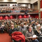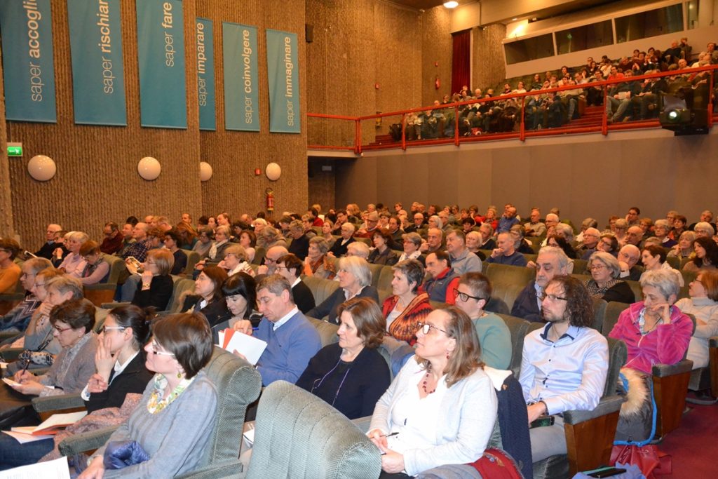 Sala della Cooperazione con 250 persone all’avvio dell’edizione 2019 della Cattedra del Confronto, proposta dall’Area Cultura della Diocesi di Trento. Tema di quest’anno “Le sfide della convivenza” attorno a tre parole chiave: umiltà, mitezza e purezza. La partecipazione attenta al primo, ricco e vivace, confronto fra la teologa Stella Morra e la pedagogista Luigina Mortari sull’umiltà conferma l’efficacia di una formula che si rinnova per l’undicesima edizione. Un’ampia sintesi del primo incontro sarà pubblicata sul numero di Vita Trentina in uscita giovedì 14 marzo. Prossimo appuntamento con la Cattedra lunedì 18 marzo sul tema della mitezza: intervengono fra Francesco Patton, francescano trentino Custode di Terra Santa e il teologo islamico Adnane Mokrani