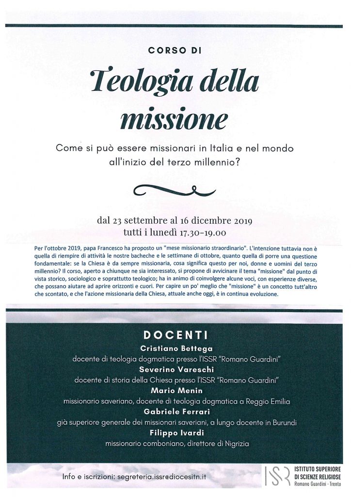 Corso di Teologia della Missione bookmark Eventi in evidenza/Speciali access_timePubblicato il: 12 Settembre 2019