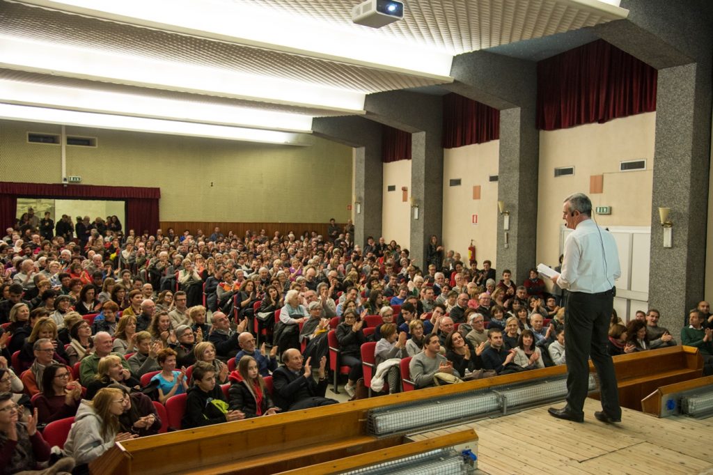 Dopo il sold out registrato negli anni scorsi in Biblioteca prima e quindi al Collegio Arcivescovile, si è scelto l’Auditorium per favorire una più ampia partecipazione. Nel pubblico, molti i giovani, a conferma dell’efficacia del linguaggio utilizzato e dei temi toccati da Vivaldelli.