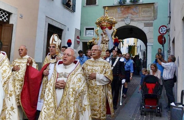 A Rovereto celebrazione in forma inevitabilmente ridotta, causa Covid, del Voto a Maria Ausiliatrice che si rinnova oggi, mercoledì 5 agosto, ed ininterrottamente dal 1703, quando la città scampò alla distruzione da parte delle truppe francesi. Quest’anno, a causa delle restrizioni imposte dalla pandemia, in accordo con il Comune di Rovereto, si è stabilito di annullare la tradizionale processione per le vie della città, riducendo le celebrazioni ad un unico momento solenne: la Messa del mattino alle ore 10.00 presieduta dall’arcivescovo Lauro Tisi e animata da una rappresentanza dei cori giovanili delle parrocchie roveretane.
