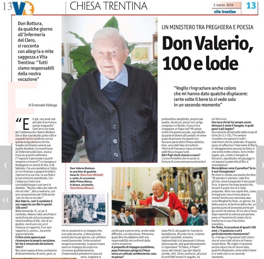 “Don Valerio, 100 e lode” titola Vita Trentina, nell’intervista pubblicata sul numero da oggi in edicola e nelle case degli abbonati.