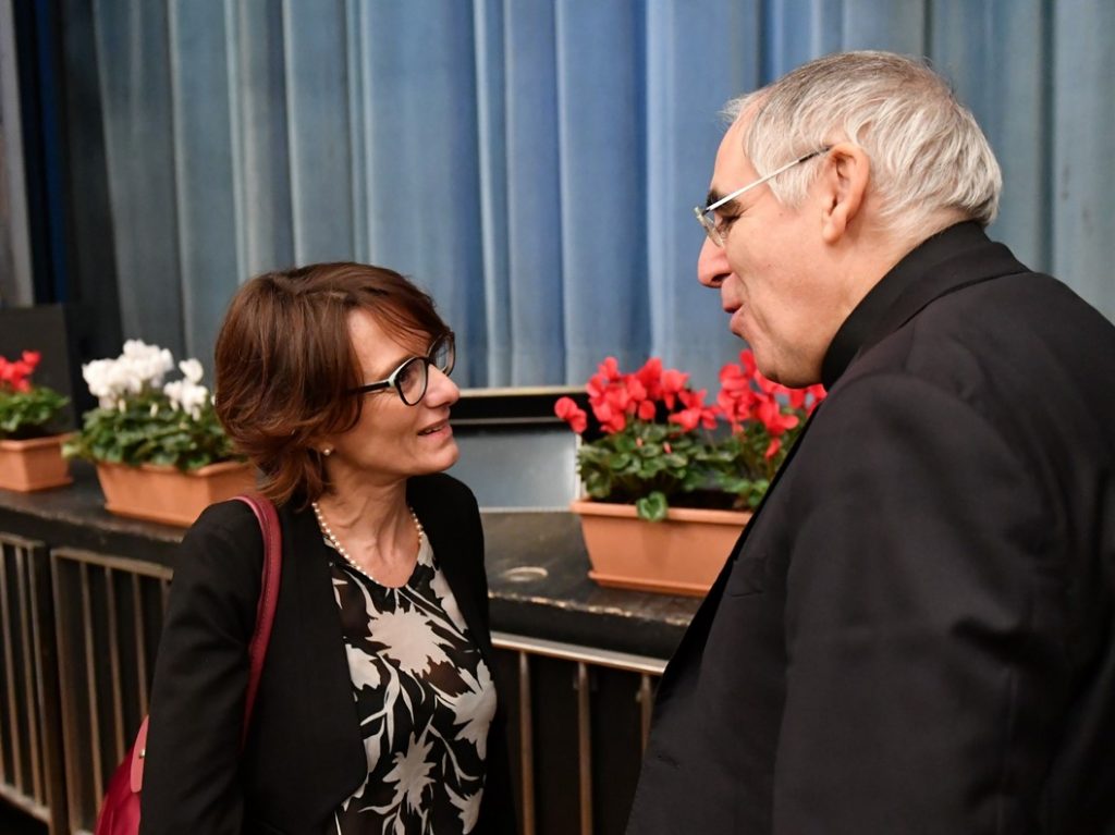 Il Ministro della Famiglia Elena Bonetti dialoga con l’arcivescovo Lauro prima dell’inaugurazione del Festival di Trento