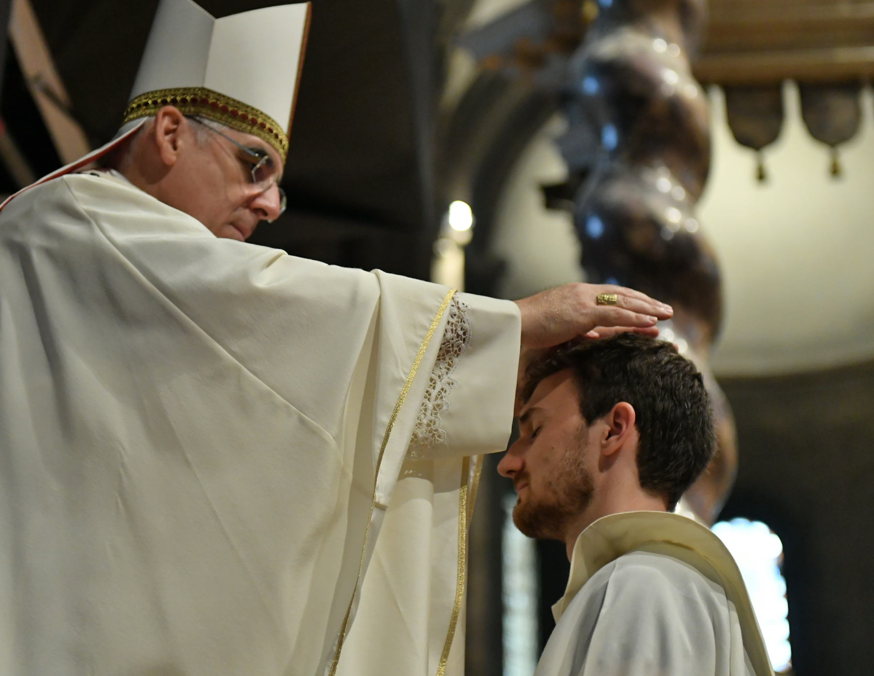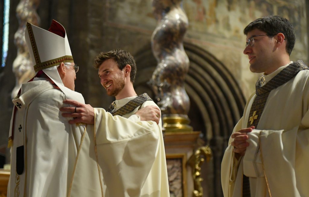 Le parole risuonano nell’omelia, in una cattedrale gremita. Ci sono parenti e amici di Francesco Viganò, 26 anni di Romagnano e Luca Tomasi, 25 anni di Godenzo-Poia; tanti compaesani, parroci in testa; i rappresentanti delle comunità dove i due novelli hanno collaborato, durante gli anni di preparazione in Seminario. Non meno di 150 preti presenti – tra loro anche una decina dell’infermeria del clero – venuti per imporre, subito dopo il vescovo Lauro e l’emerito Bressan, le loro mani sul capo dei due nuovi confratelli e poi abbracciarli al termine della grande preghiera di ordinazione.