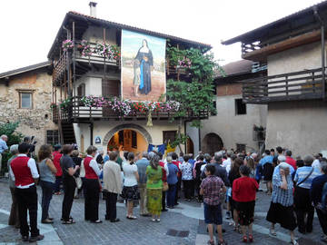 generazioni” anteprima dello spettacolo teatrale dell’Associazione Teatrale “Spazio Elementare” di Vallarsa e alle 21.15 la rassegna “Eco dei portici” con il coro Vigolana e Coro Genzianella. Il ritrovo di domenica 9 luglio è fissato alle 9 nel piazzale della chiesa di S. Giorgio per la sfilata accompagnata dalla banda “S.Giorgio”. Poi il saluto delle autorità e alle ore 11 la Messa presieduta dall’Arcivescovo Lauro Tisi. (tratto da Vita Trentina)