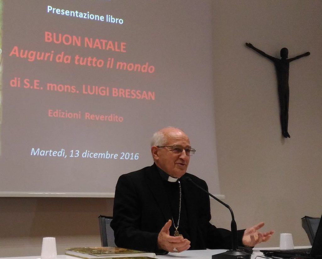 “È un libro nato per testimoniare l’universalità del messaggio del Natale e perché non si perda il suo vero valore”. L’arcivescovo emerito Luigi Bressan spiega così “Buon Natale Auguri da tutto il mondo”, il libro da lui firmato e fresco di stampa per le edizioni Reverdito. 350 immagini a colori dal mondo (dalla Cina al Brasile, dall’Africa ai vari paesi della grande arte europea), dal 1800 ad oggi, ampiamente commentate.