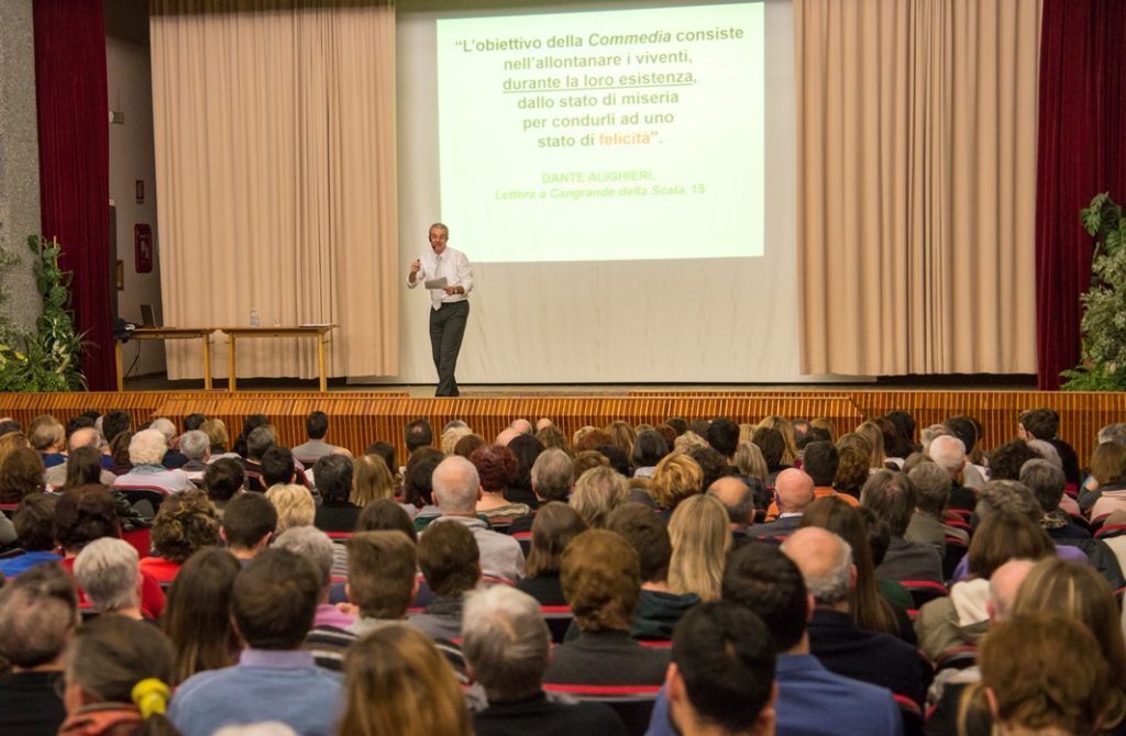 Non meno di cinquecento persone nell’aula magna del Collegio Arcivescovile, lunedì 19 febbraio, per la nuova tappa del viaggio del professor Gregorio Vivaldelli alla scoperta della Divina Commedia, proposto da Biblioteca diocesana Vigilianum, Stat e Arcivescovile . “Chi cammina vive” il titolo dell’incontro con il biblista trentino che ha guidato un pubblico attento e partecipe (molti i giovani) nell’antinferno dantesco e nei primi “cerchi”, tra ignavi e lussuriosi, soffermandosi, in particolare  sulle figure di Paolo e Francesca. VIvaldelli rilancia con passione  e professionalità la forza attualizzante del messaggio di Dante che “descrive l’aldilà per parlare all’aldiqua”. Il percorso antropologico, teologico e poetico, commentato dal docente rivano, svela gradualmente un intenso appello alla libertà e alla responsabilità di ciascuno (“Anche nel Trecento un 4 marzo si votava e secondo Dante sono gli ignavi quelli che non vanno a votare”, ha chiosato ), in una logica (anche biblico-evangelica) di amore autentico, capace di non scindere la dimensione emotiva da quella razionale. Prossima tappa, sempre al Collegio Arcivescovile, giovedì 19 aprile. Qui Vivaldelli alla radio diocesana Trentino inBlu