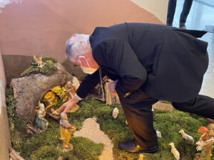 Dopo la recita del Padre Nostro, il Vescovo ha invocato la benedizione sui ragazzi e sul presepio, collocando la statuina di Gesù Bambino nella culla.