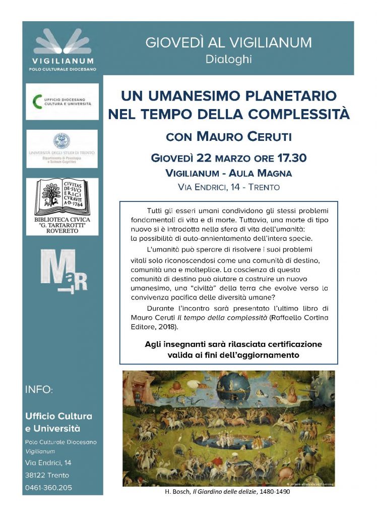 Incontro con Mauro Ceruti bookmark Eventi in evidenza/Speciali access_timePubblicato il: 21 Marzo 2018