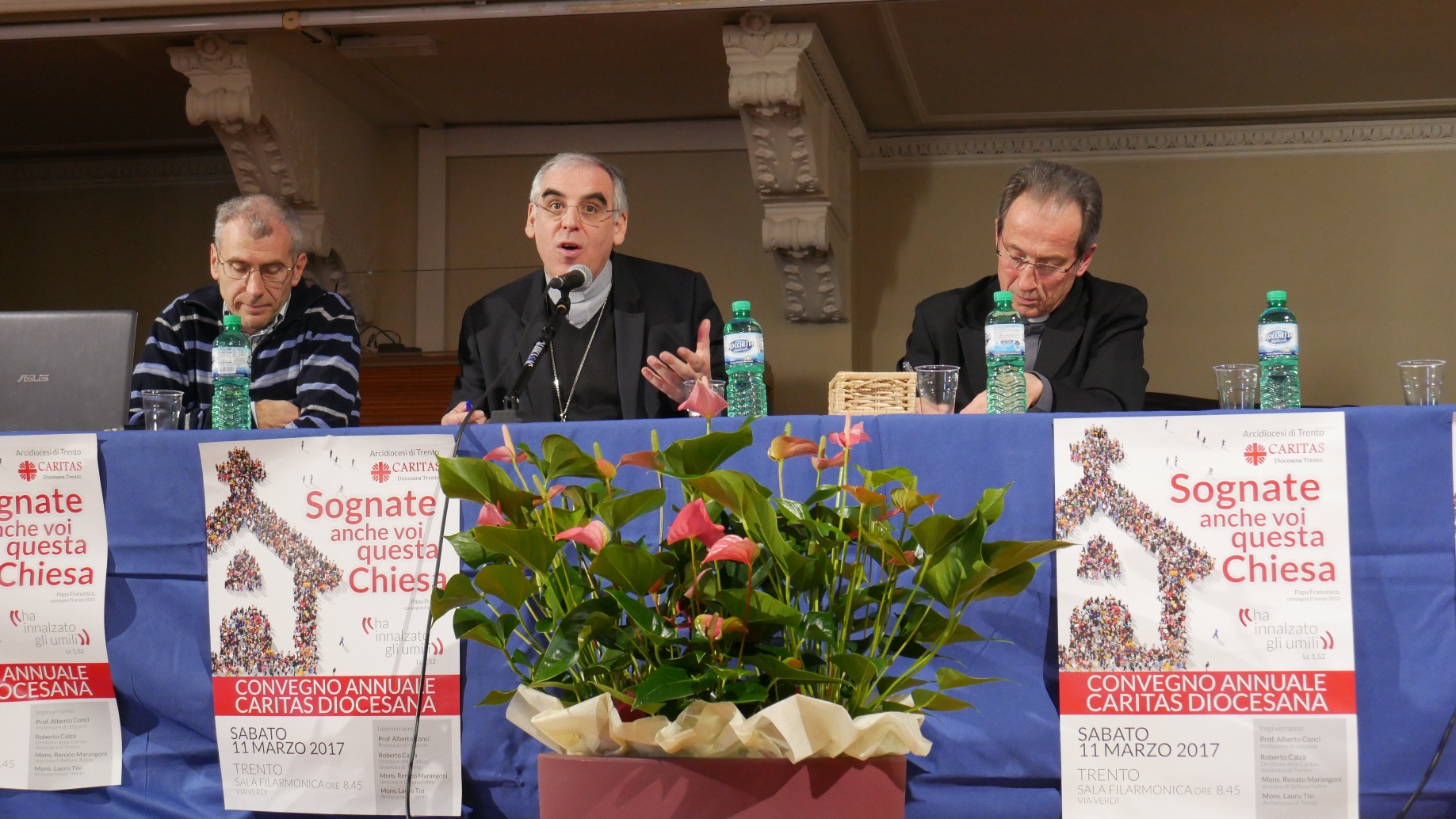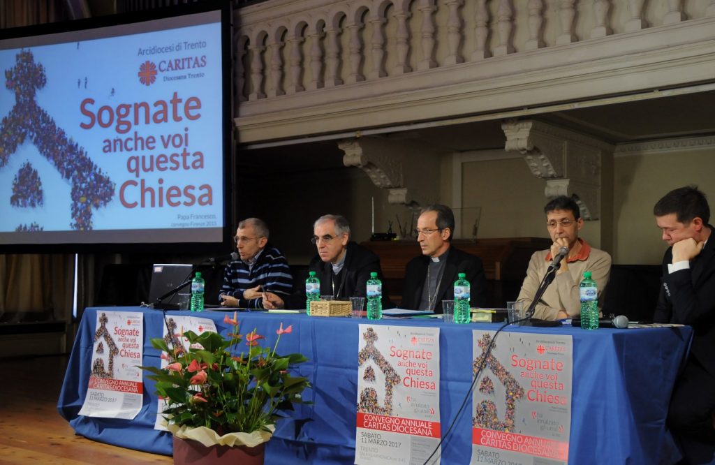 Solo l’amore, la carità consentono alla Chiesa di sognare. Una Chiesa capace di vivere la fraternità, pienamente immersa dentro questo tempo, senza pretendere di avere risposte ma con il coraggio di mettersi in ascolto e porsi domande. E’ il messaggio a più voci risuonato questa mattina a Trento, in un’affollata Sala della Filarmonica, nell’annuale convegno della Caritas diocesana, momento di ricarica soprattutto per i tanti volontari (più di trecento) che operano in tutto il territorio diocesano. Al centro del confronto, la Chiesa sognata da papa Francesco “inquieta, vicina agli abbandonati, ai dimenticati”, così come la indicava Bergoglio al convegno ecclesiale di Firenze (2015).