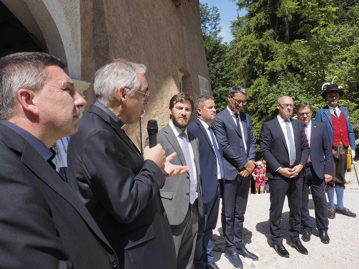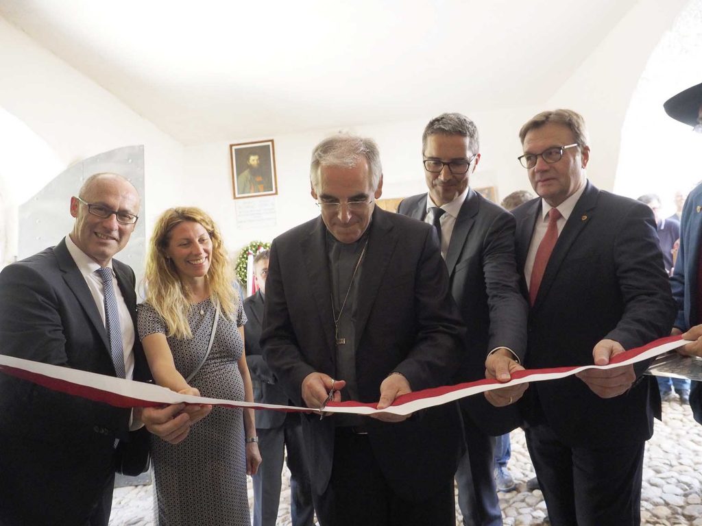 Nel pomeriggio di mercoledì 12 luglio i tre presidenti dell’Euregio, Ugo Rossi, Arno Kompatscher e Günther Platter – riuniti a Sanzeno nella seduta della Giunta Euregio – hanno visitato insieme all’arcivescovo di Trento Lauro Tisi, il Santuario dedicato a San Romedio e il nuovo percorso espositivo permanente, ultimo tassello della campagna di restauri, riuso e riqualificazione del santuario condotta dalla Provincia autonoma di Trento tramite la Soprintendenza per i beni culturali, in base al protocollo d’intesa con l’Arcidiocesi di Trento, la Comunità della Val di Non e i Comuni di Predaia, di Sanzeno e di Romeno.