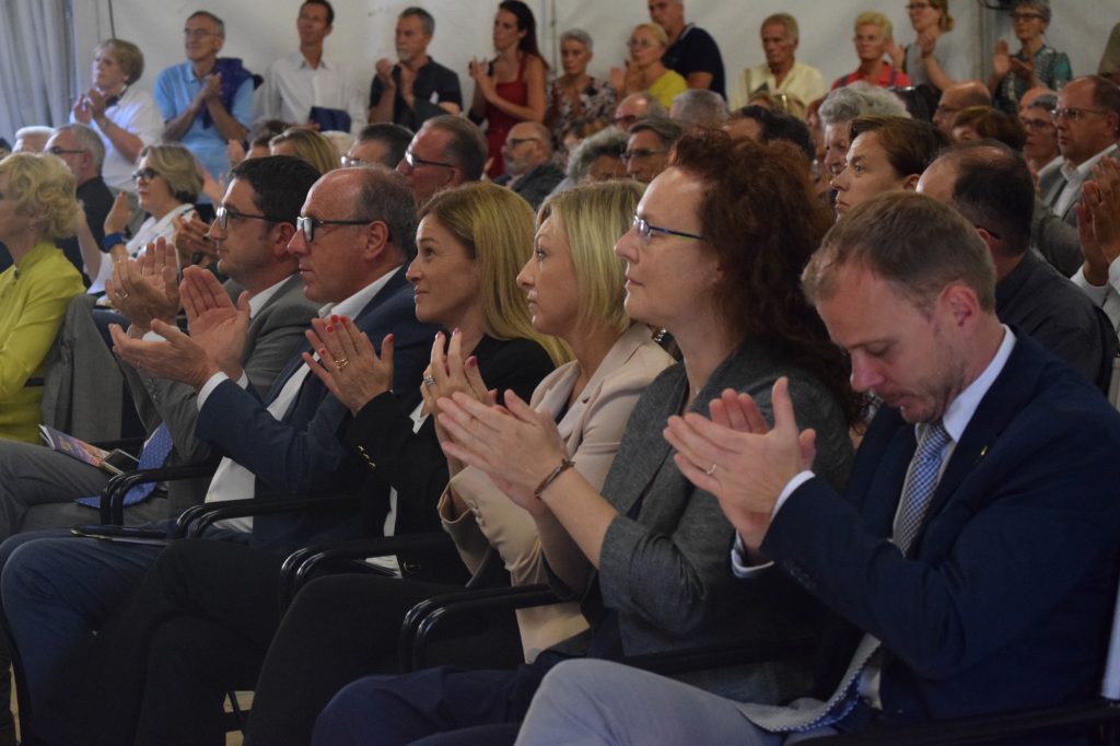 Numerosi gli ospiti e le autorità intervenuti a Pieve Tesino: fra questi le figlie dello statista Cecilia e Paola De Gasperi, il sindaco di Pieve Tesino Carola Gioseffi, l’arcivescovo Lauro Tisi – che oggi, lunedì 19 agosto, anniversario della morte di De Gasperi, presiederà la tradizionale s. Messa in suffragio dello statista trentino (a Borgo ore 19.30) –, il presidente della Provincia autonoma di Trento Maurizio Fugatti.