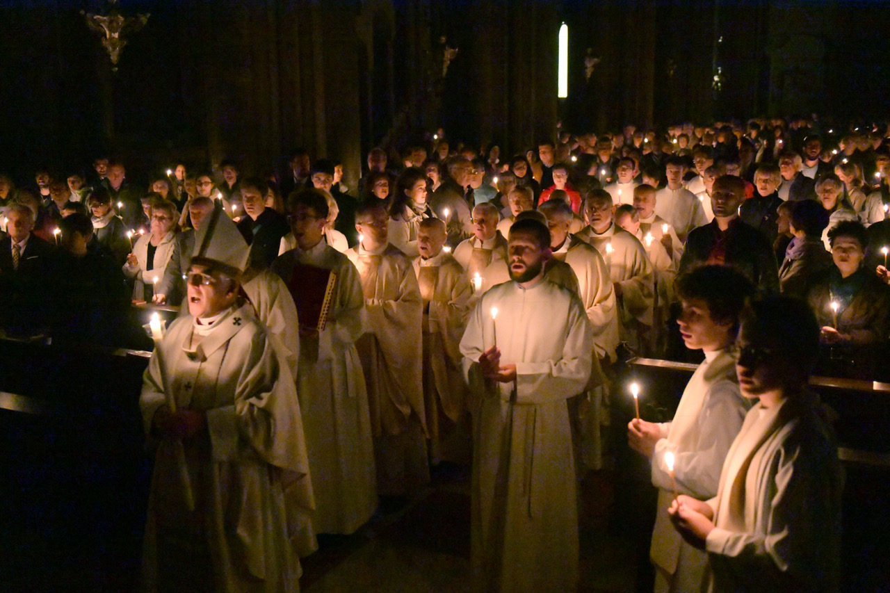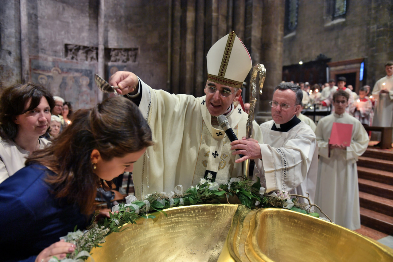“Non lasciamoci rubare la Speranza, Cristo Risorto. Frequentiamo la sua vita. Liberiamoci dalla lettura tecnico-economica, a cui ci riduce il sistema. Diciamo basta a una vita pensata come codice fiscale, come budget di spesa, come profilo virtuale. L’uomo e la donna sono bellezza, mistero, incanto”. Così l’arcivescovo di Trento Lauro Tisi, questa mattina, nell’omelia del solenne pontificale di Pasqua in cattedrale. Al centro della riflessione, la grande “notizia” della Risurrezione di Gesù, già annunciata nella lunga Veglia pasquale di ieri sera, durante la quale l’Arcivescovo ha conferito Battesimo, Prima Comunione e Cresima a due donne, Ilaria e Ionida. Tisi sottolinea ancora nell’omelia: “Il potere degli uomini, per quanto possa essere assoluto, conosce il limite della morte. Può decidere – lo raccontano le cronache di questi giorni – la morte degli altri, ma non può nulla per sottrarre se stesso alla morte. Il Risorto, invece, esercita la sua signoria anche sulla morte”.