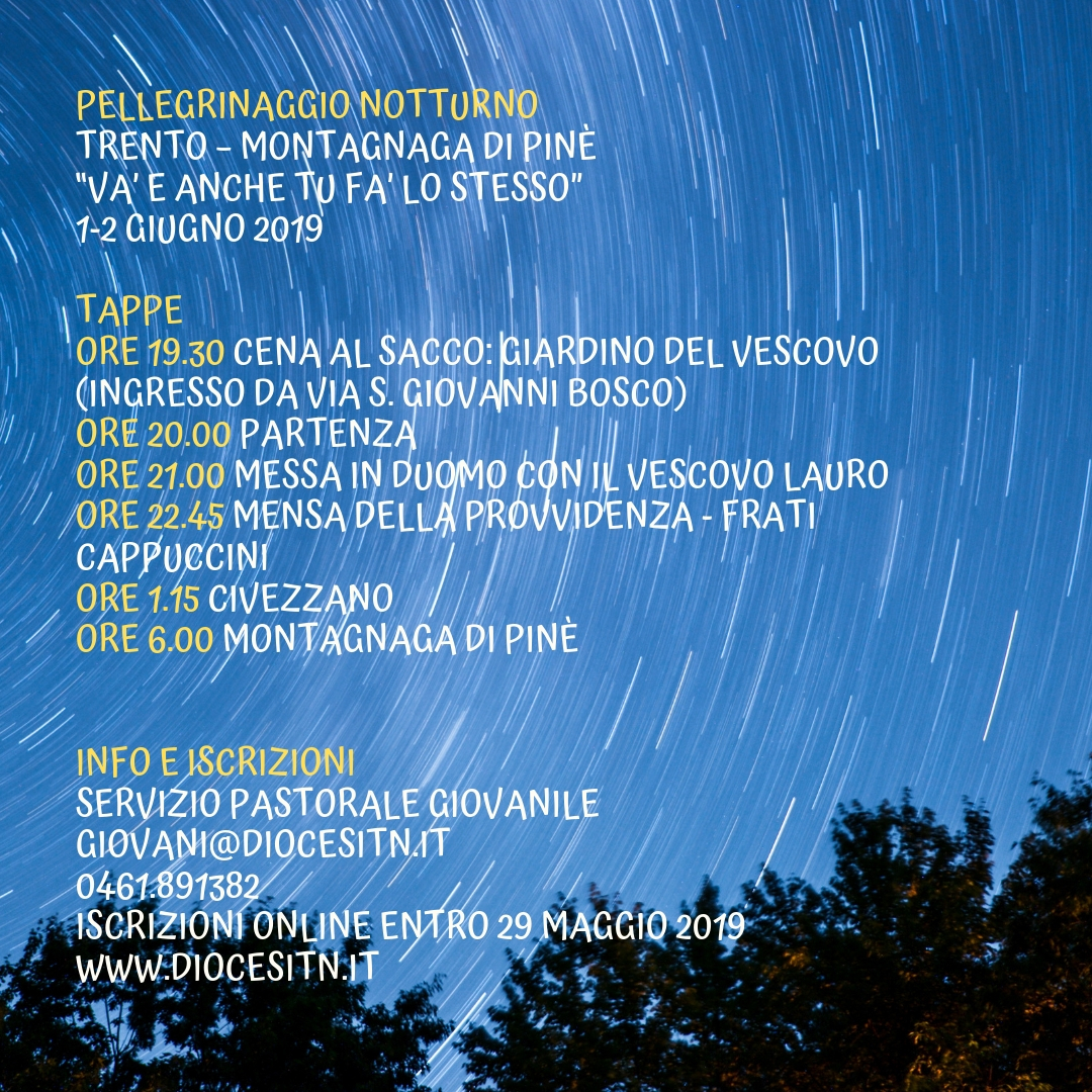 Pellegrinaggio notturno a Pinè bookmark Eventi in evidenza/Speciali access_timePubblicato il: 30 Aprile 2019