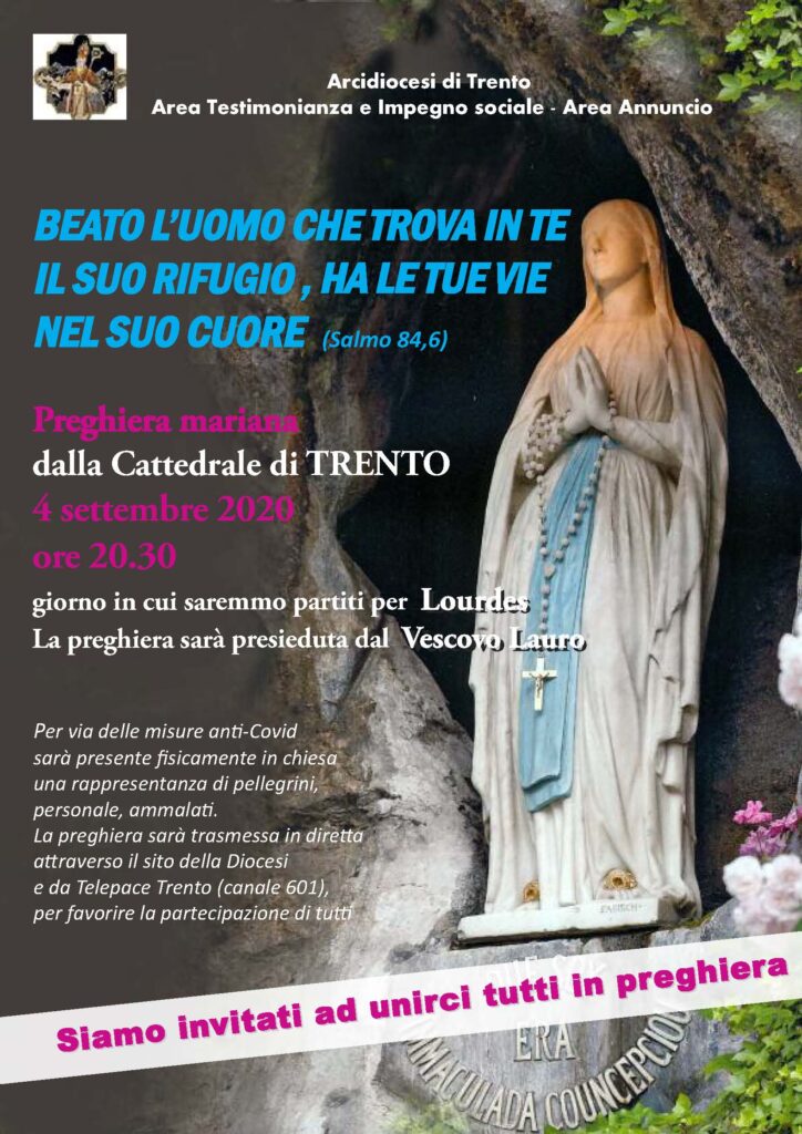 L’invito è quello a raccogliersi in preghiera la sera di venerdì 4 settembre, alle 20.30, assieme al vescovo Lauro che guiderà la preghiera mariana dalla Cattedrale di Trento.