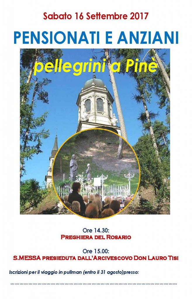 Pensionati a anziani sono invitati sabato 16 settembre al pellegrinaggio al Santuario mariano di Montagnaga di Piné, promosso dalla pastorale di settore.