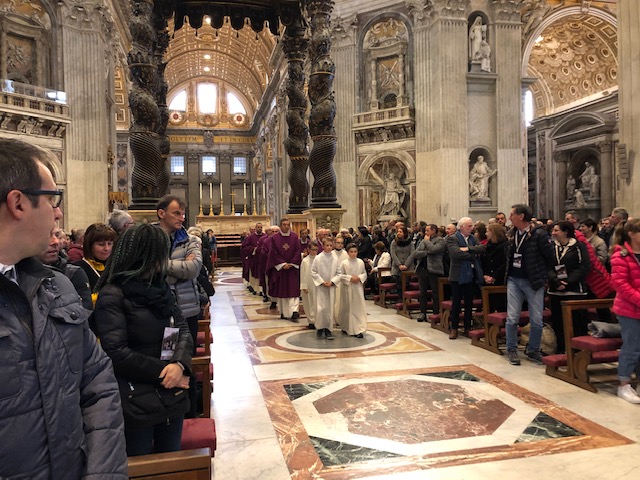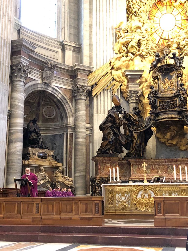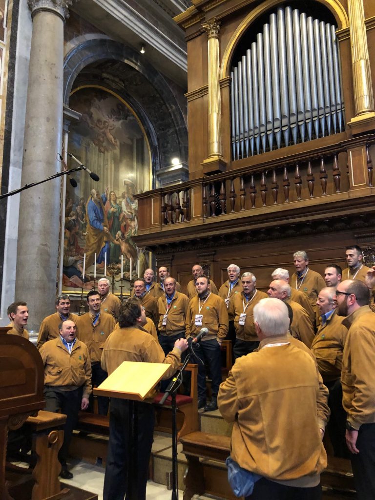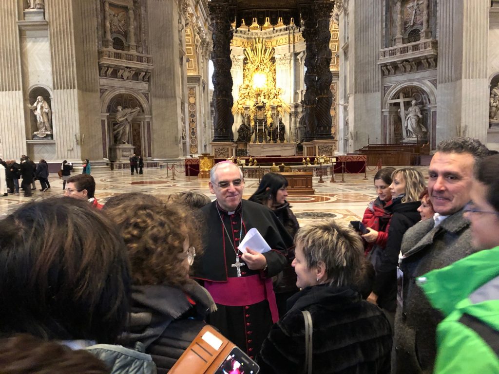 (Roma, 5 dicembre) All’altare della cattedra di San Pietro, sotto la Gloria del Bernini, si diffondono le sonorità alpine del coro Lagorai di Torcegno. È la s. Messa mattutina, presieduta dall’arcivescovo di Trento Lauro Tisi, ad aprire la giornata romana del migliaio di fedeli, in gran parte dalla Valsugana, arrivati nella capitale per l’inaugurazione del presepio donato della comunità di Scurelle, da oggi pomeriggio visibile all’ombra del colonnato. Con loro il presidente della Provincia Maurizio Fugatti e il presidente del Consiglio Regionale, Roberto Paccher e del Consiglio Provinciale Walter Kaswalder, buona parte del governo provinciale oltre a numerosi sindaci, in testa il primo cittadino di Scurelle Fulvio Ropelato.