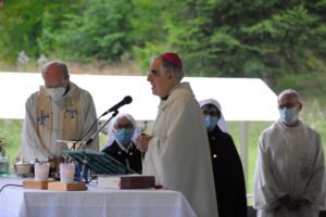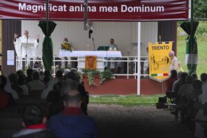 Nella conca della Comparsa di Piné, poco meno di duecento persone (nel pieno rispetto delle regole sanitarie) per l’appuntamento diocesano, venerdì 16 luglio, con la s. Messa-pellegrinaggio, dedicata soprattutto ai volontari di Ospitalità Tridentina sotto lo slogan “Ripartiamo da Piné”.