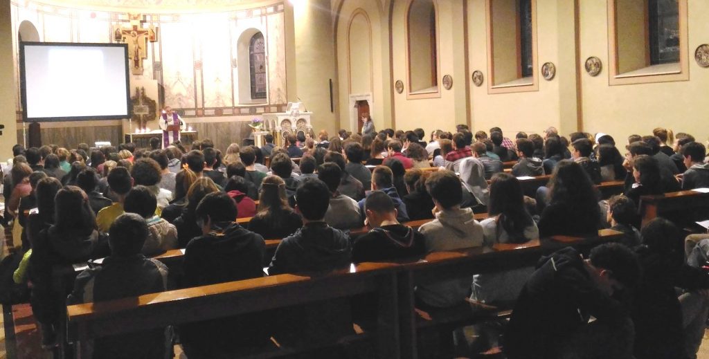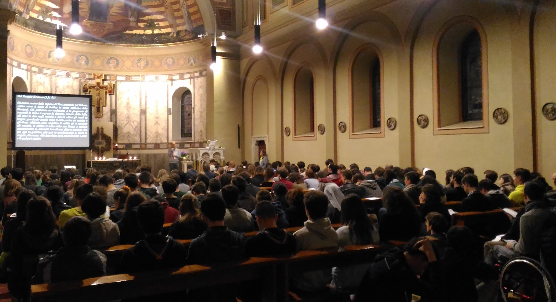 Chiesa del Seminario ancora gremita di giovani, nella serata di giovedì 23 marzo, per il quinto e ultimo appuntamento della prima edizione di Passi di Vangelo con l’arcivescovo Lauro. Partendo dal brano dell’evangelista Marco che racconta la guarigione del sordomuto, l’arcivescovo ha invitato i giovani a riscoprire il “gusto del silenzio” e a pensare la fede non come somma di precetti dottrinali ma come necessità del contatto con una persona fisica, Gesù di Nazareth, che a sua volta invita alla relazione autentica, concreta, con gli altri. Don Rolando Covi, responsabile della pastorale giovanile, ha ringraziato i tanti giovani per la loro appassionata presenza, rinnovando l’appuntamento con Passi di Vangelo per l’autunno prossimo.