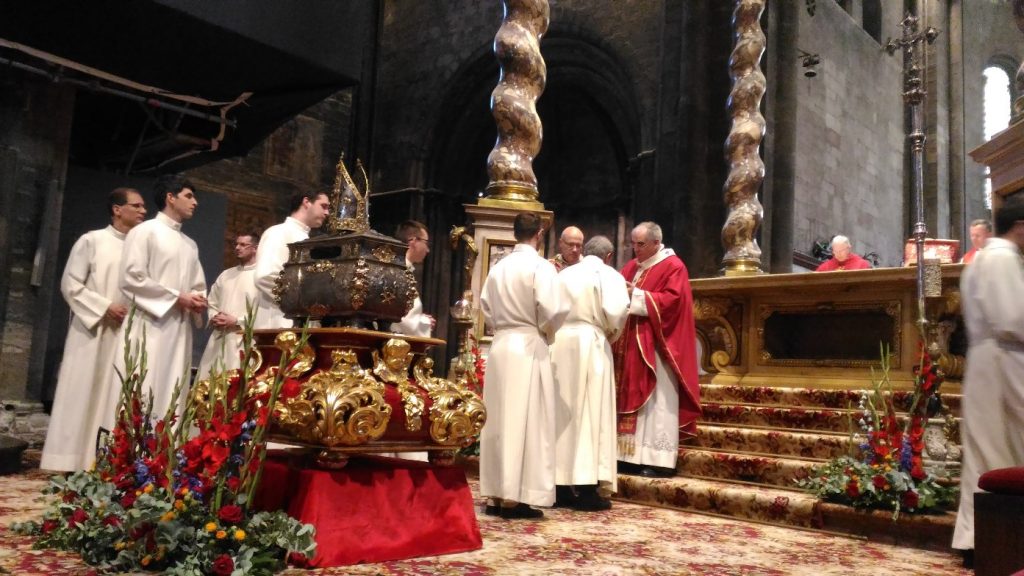 La Chiesa di Trento celebra sabato 26 giugno il patrono, San Vigilio. Per il solenne pontificale, presieduto dall’arcivescovo Lauro, la Cattedrale riaprirà le porte, dopo alcune settimane di chiusura, necessarie per consentire l’allestimento dei ponteggi per il restauro della zona dell’abside e dei transetti. Torna invece pienamente visibile la navata centrale dopo l’intervento conservativo.