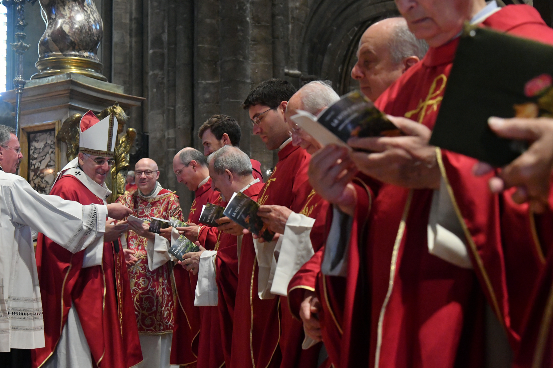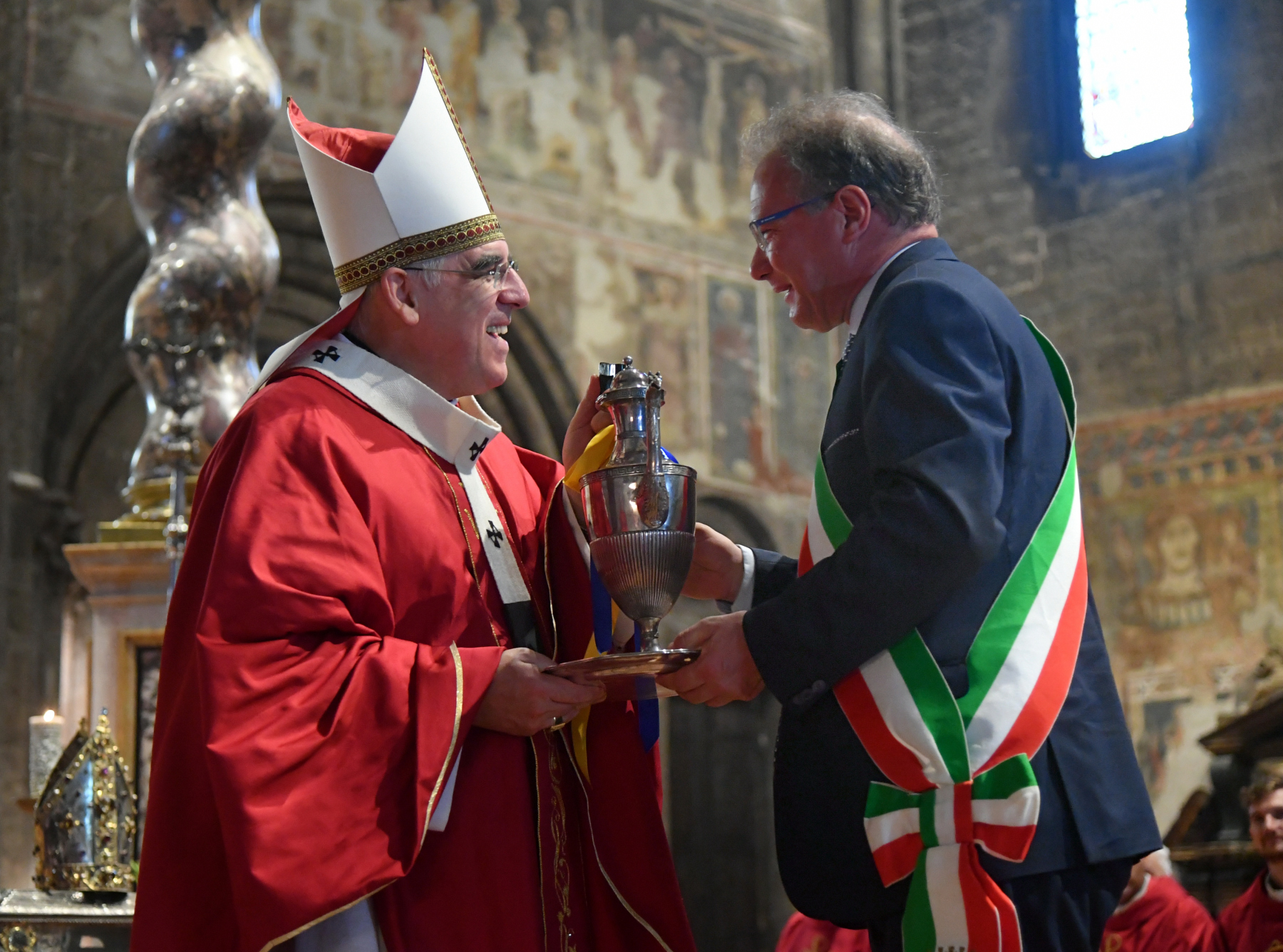 Sull’altare della cattedrale, accanto a don Lauro – oggi applaudito anche per il trentesimo anniversario della sua ordinazione presbiterale (26 giugno 1987, con altri cinque confratelli, ricorda il vicario don Marco Saiani) – i preti ordinati sabato scorso, don Francesco Viganò e don Luca Tomasi. E mentre il sindaco di Trento, Alessandro Andreatta, come da tradizione, dona all’Arcivescovo l’ampolla con l’olio che alimenta la lampada davanti all’altare di San Vigilio, monsignor Tisi idealmente ricambia con la consegna al primo cittadino e ai rappresentanti della comunità della sua nuova Lettera “La vita è bella“, distribuita poi all’uscita dalla cattedrale a tutti i fedeli. “Un modo – commenta Tisi – per dialogare con tutti. Con i credenti ma anche con chi non crede o ha altre fedi, attraverso l’umanità di Gesù di Nazareth”.