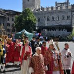 Vasta partecipazione nella mattinata di lunedì 26 giugno a Trento al solenne pontificale in occasione della ricorrenza del patrono della Chiesa locale e della città capoluogo, San Vigilio. L’inizio della celebrazione nella basilica di S. Maria Maggiore, per giungere poi in cattedrale: con l’arcivescovo Lauro numerosi sacerdoti, religiosi/e, diaconi, autorità civili e militari, tanti fedeli. Al centro del corteo, la grande urna seicentesca con le reliquie di Vigilio, terzo vescovo di Trento, morto nell’anno 400, considerato il principale artefice della diffusione del cristianesimo in terra locale insieme ai suoi collaboratori, i martiri Sisinio, Martirio e Alessandro.