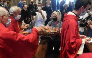 Al termine della liturgia, animata dal coro della Cattedrale (diretto da Paolo Delama, all’organo Stefano Rattini) e trasmessa in diretta streaming e TV (regia di Paolo Holneider) la tradizionale benedizione del Pane di San Vigilio (distribuito dall’associazione panificatori ai fedeli in chiesa) e la consegna della Lettera alla comunità “Occhi” (vedi articolo) affidata personalmente dal vescovo alle autorità e ai sacerdoti concelebranti: “nella pandemia Il volto che riuscivamo a vedere dei nostri fratelli erano solo gli occhi. Ho messo in luce i tanti fratelli e sorelle morti, quasi 1500 persone: avremmo potuto dire una parola in più sul morire; un passaggio è sulla forza di Gesù che interpella la Chiesa: abbiamo ancora voglia di raccontare Gesù?; quindi, il tema dei giovani che ci invitano a sognare e sperare insieme”.