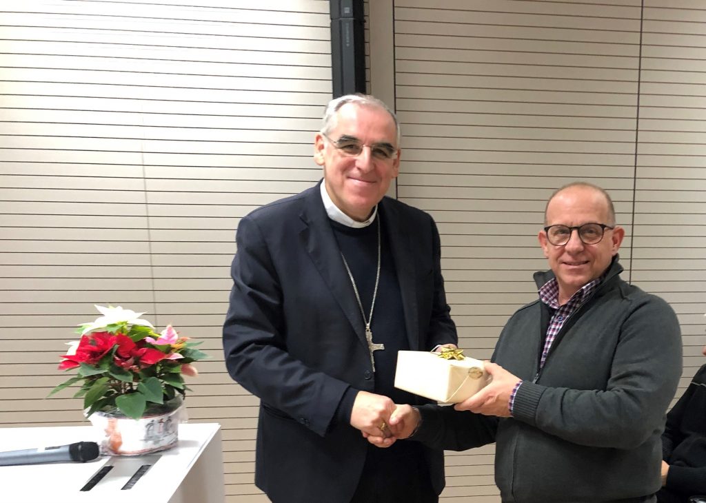 Dall’aula magna al completo è poi scattato l’applauso per Giorgio Vichi, addetto dei servizi interni che dopo dieci anni in Curia, a fine 2019 raggiunge la pensione. Per lui, dalle mani dell’Arcivescovo, un prestante binocolo, omaggio alla passione di Giorgio per la montagna e metafora di uno sguardo di lunga gittata per il suo futuro.