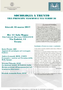 Il recente ritrovamento in Archivio Diocesano degli appunti e quaderni di sociologia del professore di teologia morale e filosofia don Celestino Endrici, futuro vescovo di Trento, rappresenta l’occasione per ripensare la storia dell’insegnamento della sociologia nella città di Trento. Nel 1902, infatti, Endrici è nominato primo lettore di “sociologia cristiana”, incarico che ricoprirà fino al 1904, anno della sua nomina a vescovo. L’Istituto Universitario Superiore di Scienze Sociali, fondato nel 1962 ad opera di Bruno Kessler e divenuto in seguito la prima Facoltà di Sociologia istituita in Italia, trova così un illustre e inaspettato precursore e riscopre una storia finora dimenticata.