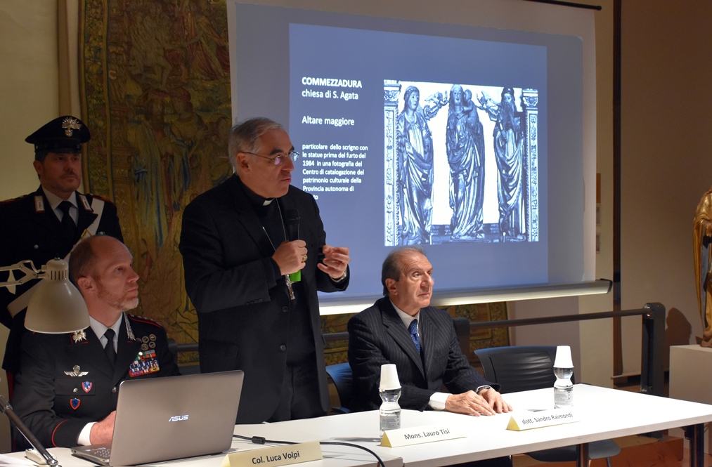 I carabinieri del Comando tutela patrimonio culturale (Tpc) di Udine hanno restituito all’Arcidiocesi di Trento una statua lignea policroma del XV secolo raffigurante S.Agata, realizzata dallo scultore altoatesino Hans Klocker, rubata dall’omonima chiesa di Commezzadura nel luglio del 1984. Nella mattinata di venerdì 14 dicembre l’opera è stata consegnata all’arcivescovo Lauro Tisi al Museo Diocesano Tridentino.
