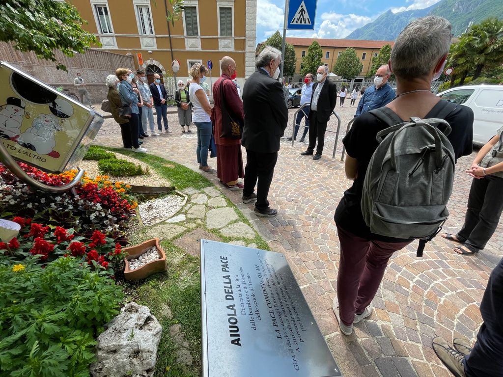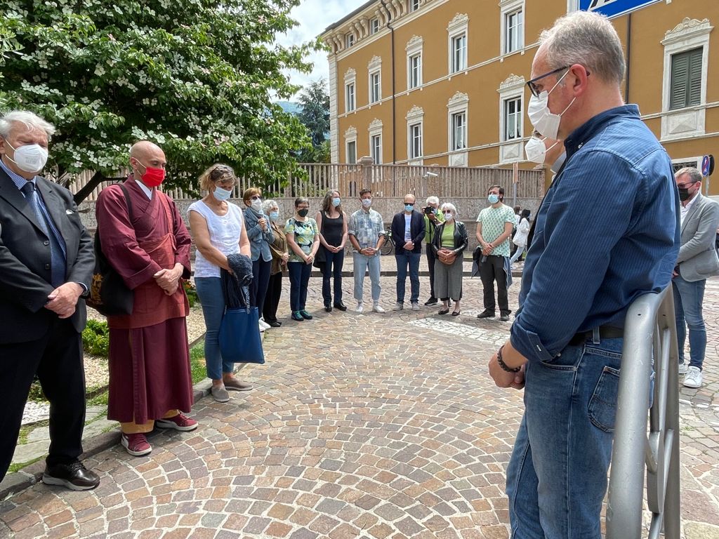L’appuntamento, alla presenza anche del vescovo Lauro e di don Cristiano Bettega, delegato dell’Area Testimonianza e Impegno Sociale dell’Arcidiocesi, era alle 13 di oggi, martedì 8 giugno, in un luogo altrettanto simbolico quale l’aiuola della pace, che sorge fra piazza Fiera e piazza Garzetti, a fianco dell’episcopio.