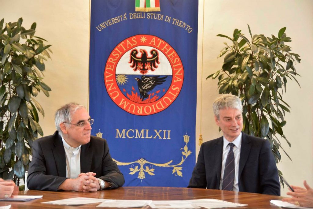 A oltre un anno dall’apertura del Polo culturale diocesano Vigilianum si rinnova la collaborazione tra Arcidiocesi e Università di Trento per attività di ricerca e didattica. La convenzione, stipulata nel luglio dello scorso anno, ha portato alla realizzazione di numerose iniziative congiunte, richiamate oggi in occasione di un incontro che si è tenuto in Rettorato tra l’arcivescovo Lauro Tisi e il rettore Paolo Collini. Nell’arco di un anno l’accordo di collaborazione quinquennale ha dato già i primi frutti con l’organizzazione di quattro conferenze sulla storia del principato vescovile e della Facoltà di Sociologia, sul patrimonio culturale immateriale e sul ruolo della memoria nella conservazione della conoscenza e nell’educazione.