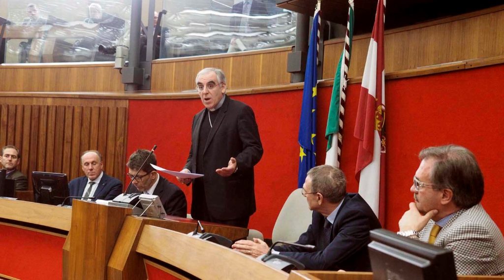 (Trento, venerdì 16 dicembre) “Se le Dolomiti sono patrimonio dell’umanità perché non le donne e gli uomini di questa terra?”. Parte da questa provocazione l’intervento dell’arcivescovo Lauro in Consiglio Provinciale, su invito della Presidenza. All’emiciclo monsignor Tisi ha rivolto un forte invito a considerare la precarietà come un’opportunità, arrivando all’elogio del limite, “quand’esso – precisa – si traduce nella percezione che da soli non ce la possiamo fare”. Nel governare un territorio “non c’è alternativa – aggiunge – all’incontro con le persone lì dove esse vivono, operano, progettano, sognano”. Quindi un riferimento alla sfida della convivenza nella provocazione dei migranti e un nuovo, accorato appello a “una politica che progetti non ‘per’ i giovani ma ‘con’ i giovani”, vero faro dell’autonomia. La disuguaglianza – ha concluso – non aspetta la politica Qui testo integrale