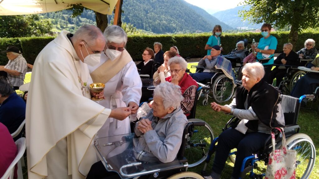 Tra segnali concreti di ritrovata speranza, prosegue da parte dell’arcivescovo Lauro il significativo viaggio nelle Case di riposo del Trentino. Ultime in ordine di tempo: la RSA “S. Vigilio” di Spiazzo Rendena (6 agosto, a cui si riferiscono la immagini), la RSA “S. Gaetano di Predazzo e la “Giovanelli” di Tesero (7 agosto). Prossima tappa martedì 10 agosto alla Casa di riposo “Laner” di Folgaria, anche in occasione del patrono San Lorenzo. Ad ogni tappa, parole di consolazione ma soprattutto di ringraziamento dell’Arcivescovo di fronte alla “resilienza” di tanti anziani, dei loro familiari e degli operatori delle strutture.