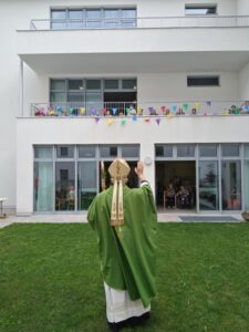 “In questi mesi dalle vostre stanze – ha aggiunto monsignor Tisi – avete gridato al Signore ‘Non ti importa che moriamo?’; sono sicuro che nella vostra preghiera più di una volta vi è sembrato che il Signore stesse dormendo e fosse assente. Io vi dico che il Signore non era assente. Come? Mentre non potevate abbracciare i vostri cari e nemmeno i volontari potevano essere al vostro fianco, il Signore ha messo negli operatori della Casa un di più di amore e di servizio. E Il mare si è calmato perché il Signore non ha dormito, ma si è reso presente nel volto degli operatori e delle operatrici di questa casa”.